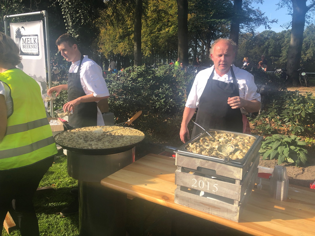Het viel al gelijk om dat alles goed geregeld was. Een uitgebreid grasveld was omgebouwd tot parkeerterrein en daarna was het nog maar een paar minuten lopen naar “Erve Beverborg”, de verzamelplek voor alle lopers. Het overgrote gedeelde van de deelnemers doet mee aan de duo-marathon. 1 loper en 1 fietser die elkaar zo om de 5KM afwisselen. Slechts een klein gedeelte van de lopers doen mee aan de solo marathon. Als het het verhaal verder leest zal je merken waarom iedereen de duo wilt doen 🙂