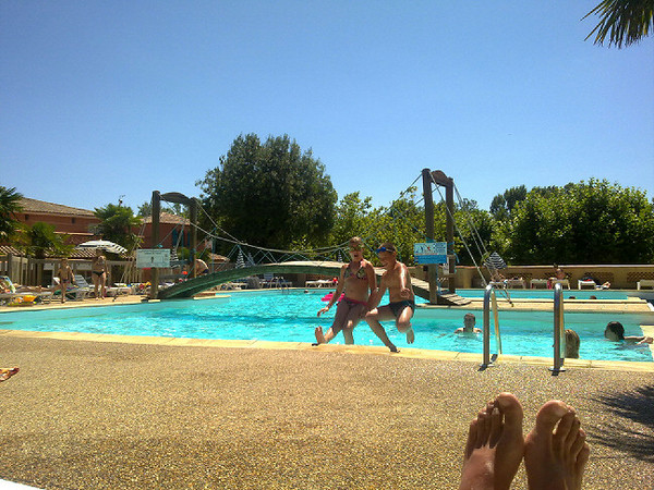 Vakantie 2010: dit jaar in de Zuid Franse provincie Languedoc. Bekend om haar wijn en haar natuurschoonheid. Vrijdagnacht, net even na 00:00 uur zijn we in de auto gestapt om deze kant om te rijden. Eigenlijk onderweg geen problemen. Een paar keer gestopt en voor we het wisten waren we al in Lyon aangekomen. Daar twitterde ik enthousiast dat we file-vrij konden doorrijden en moesten toen nog 220KM. Ja.. fout.. vlak daarna kwamen we in 35KM langzaamrijdend verkeer terecht. Heel gek: stukjes doorrijden, dan weer 3min stilstaan en weer 5min doorrijden met 120km… Een vertraging van 1,5 uur.. wat op zich niet erg was want dan waren we op tijd op de camping: Domaines les Fumades, een kleine, knusse camping, ongeveer een half uur rijden van Alès.